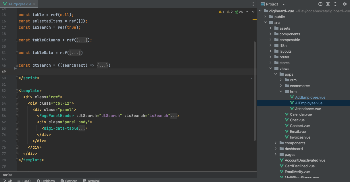 In the digiboard we are used Composition API. The primary advantage of Composition API is that it enables clean, efficient logic reuse in the form of Composable functions.