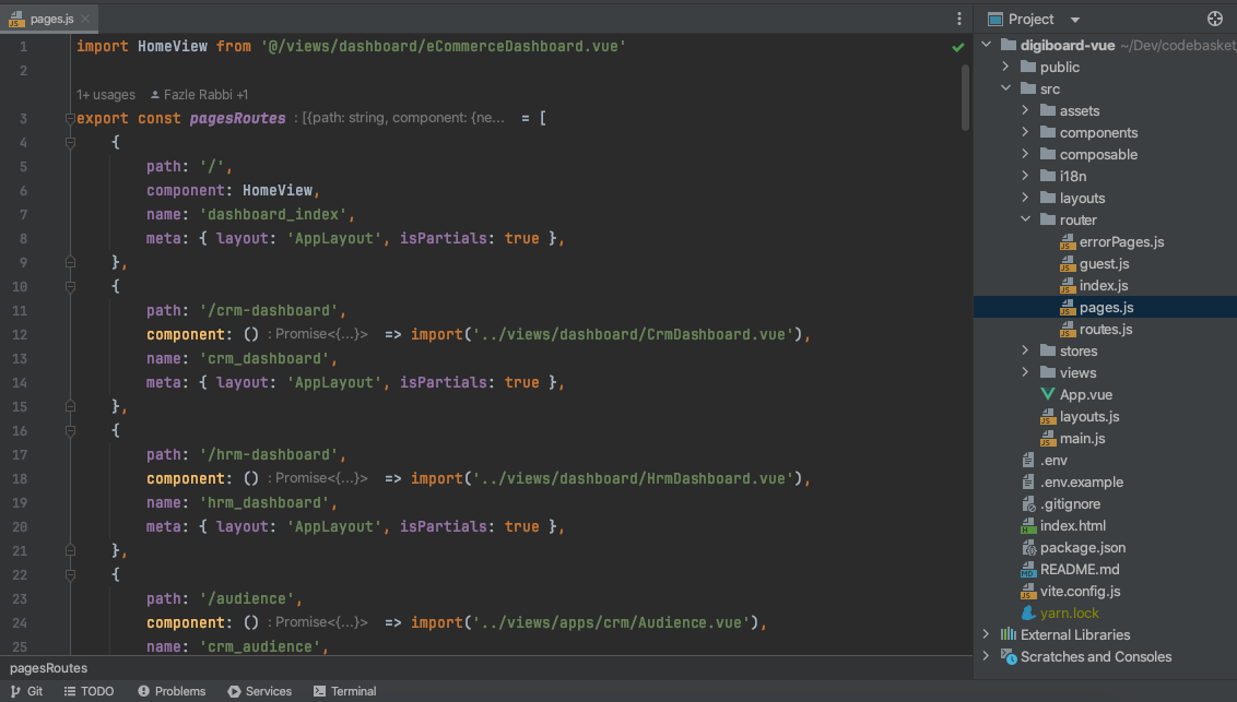 In the router index.js the routing for digiboard is done. All the pages that needs to be routed are importd here. The routing is done using vue router.